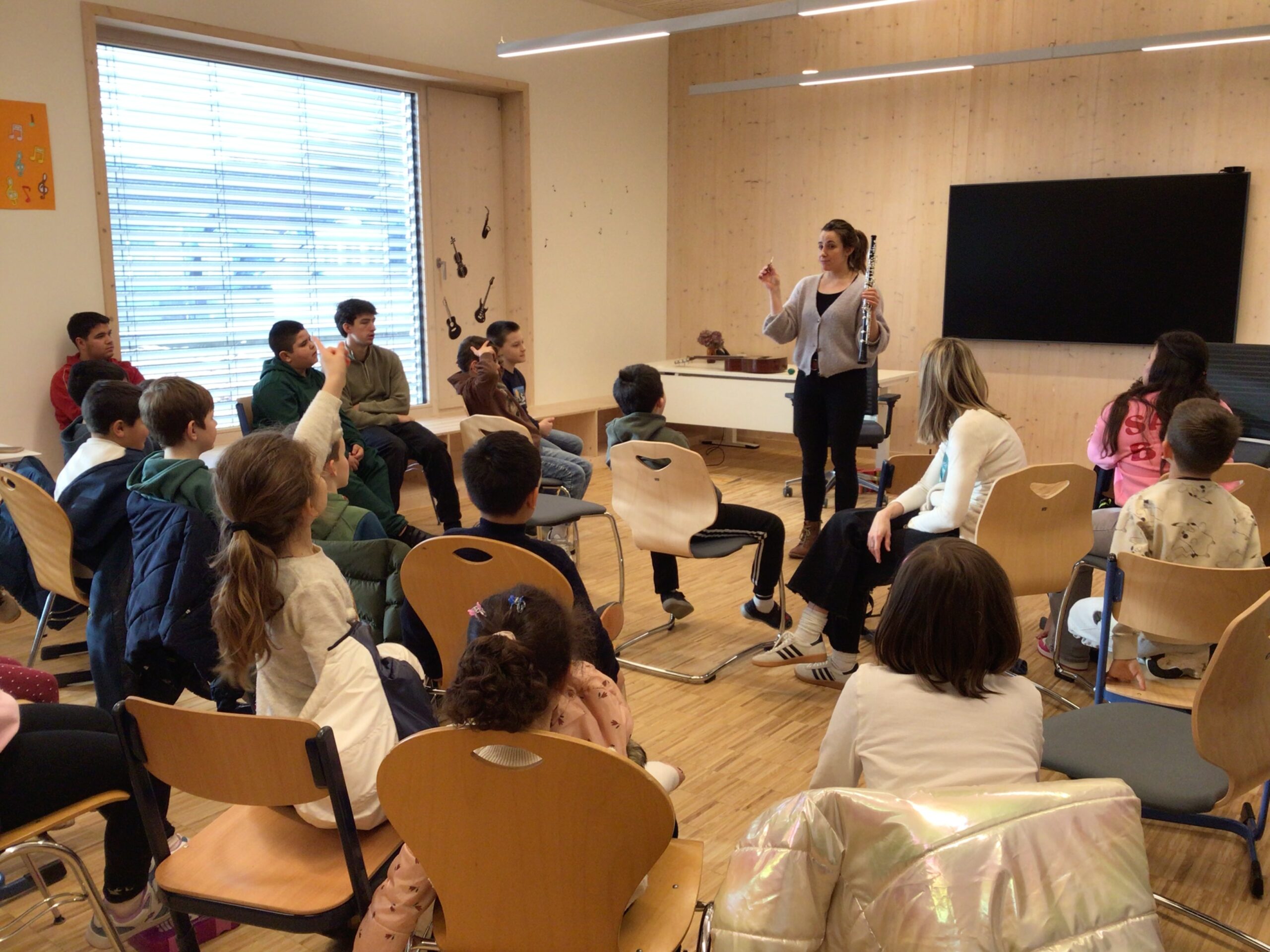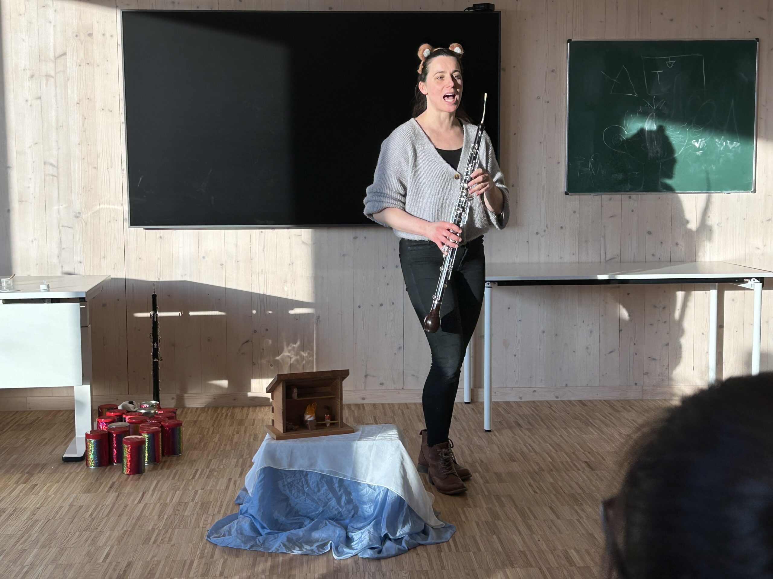 Eine ganz besondere Lesung stand im Januar in der Annexe Echternach, Site Millermoaler, auf dem Programm. Dominique Steiner, Musikprofessorin in der Musikschule Echternach, erzählte unseren SchülerInnen die Geschichte „Es klopft bei Wanja in der Nacht“ und stellte sie mit verschiedenen Musikinstrumenten spannend dar.